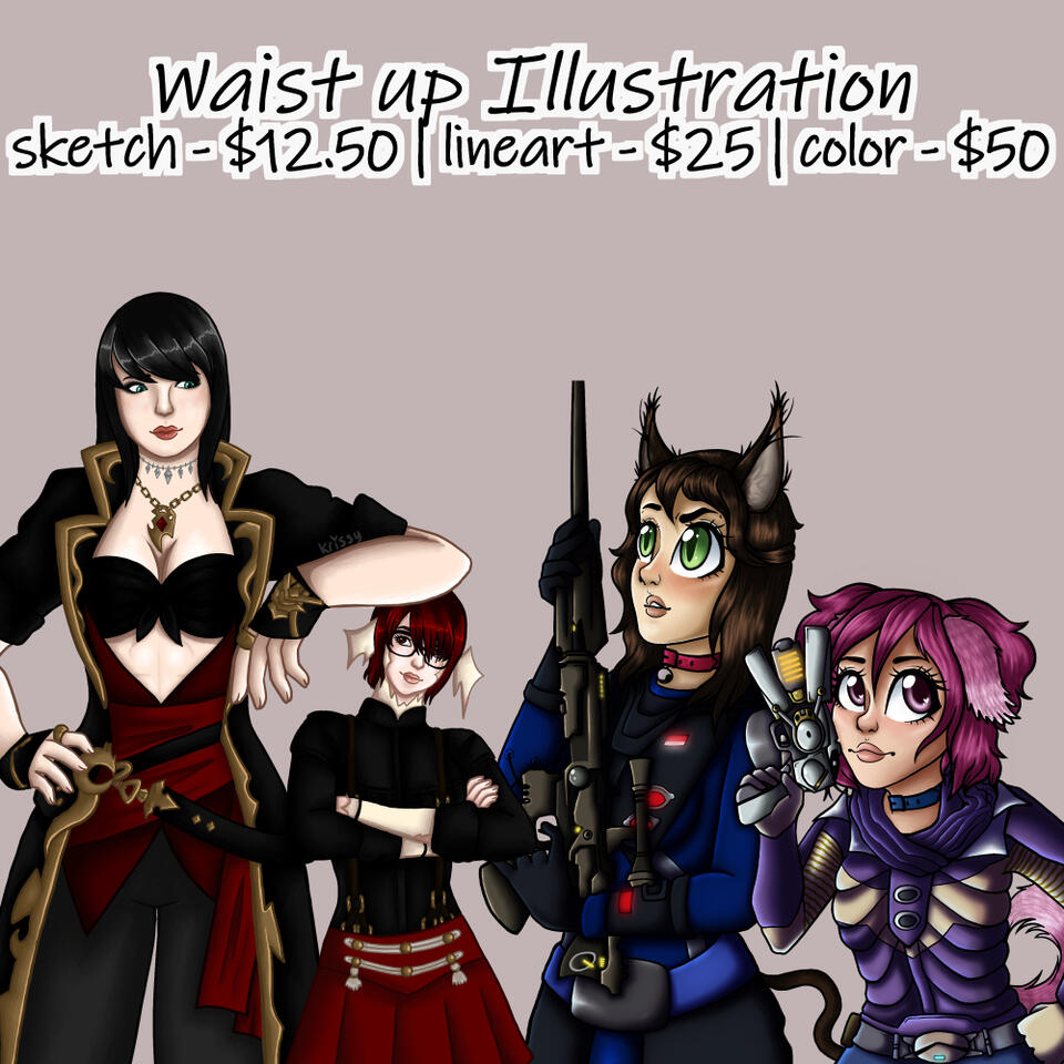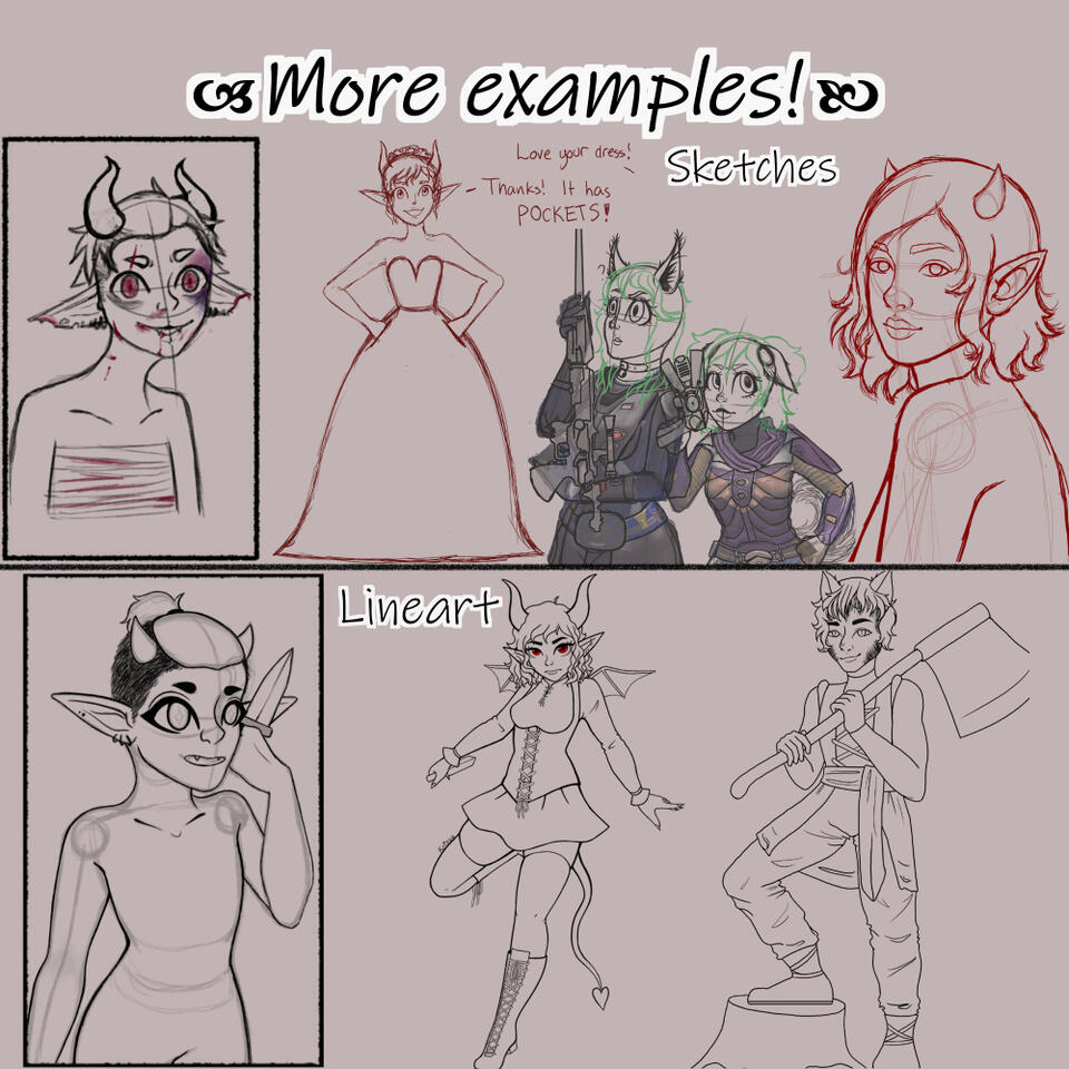 These are my prices and samples! ♡♡ Extra characters cost 50% extra.