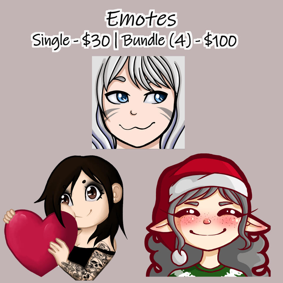 ♡ For emote commissions I do one for $30 and 5 for $100.