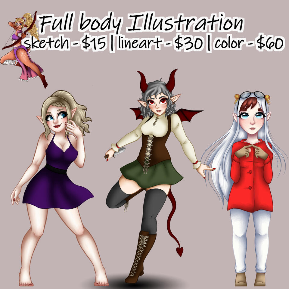 These are my prices and samples! ♡♡ Extra characters cost 50% extra.